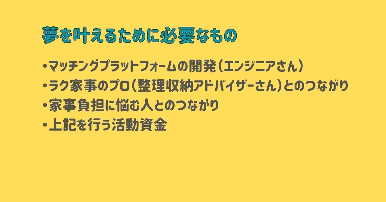 そんなカジコレの夢を叶えるために必要な人やものは以下の通りです。
