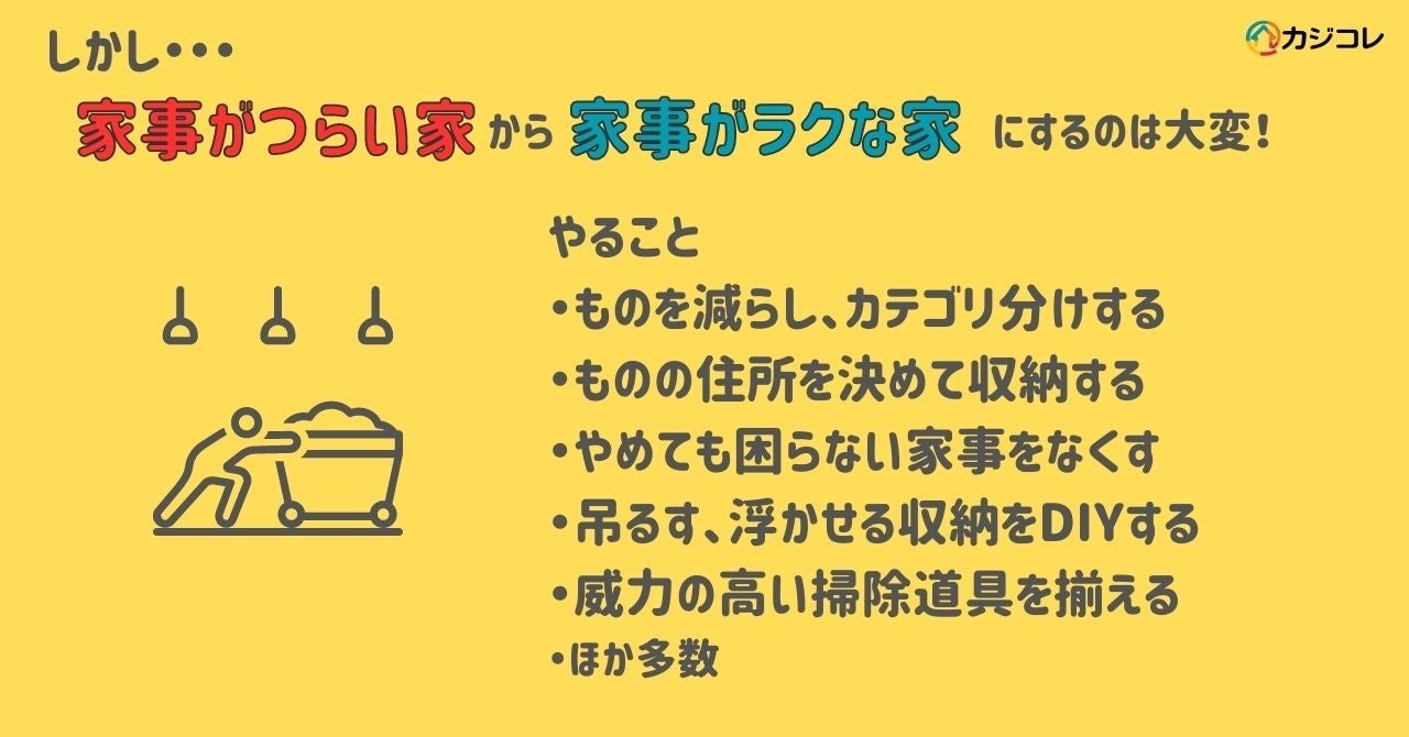 しかし、「家事がつらい家」から「家事がラクな家」にするには、なかなか大変です。