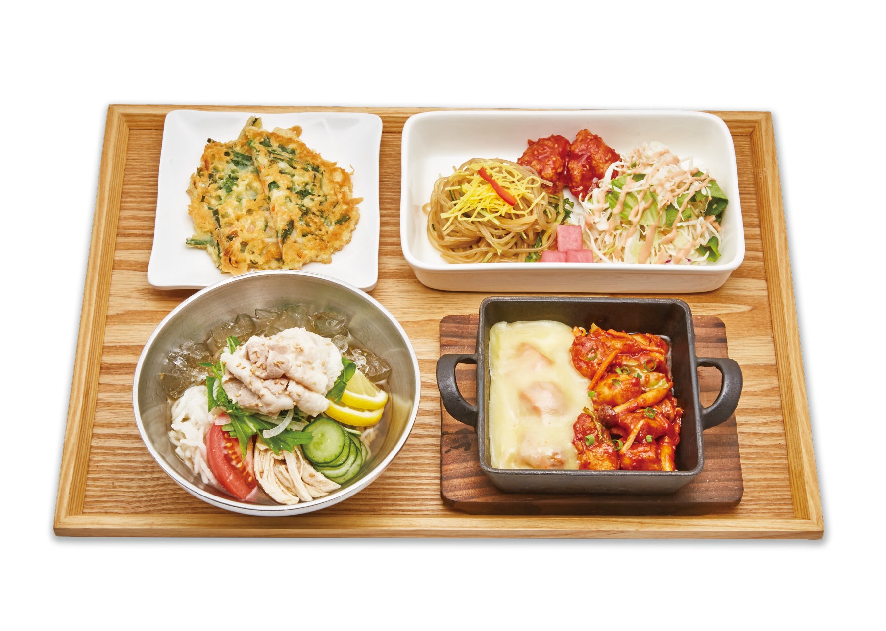 期間限定豚しゃぶレモン冷麺とまろやかな辛さにハマるチーズタッカルビのセット。夏にはピリ辛!コチュジャン(韓国辛味噌)の旨辛が食欲をそそります。