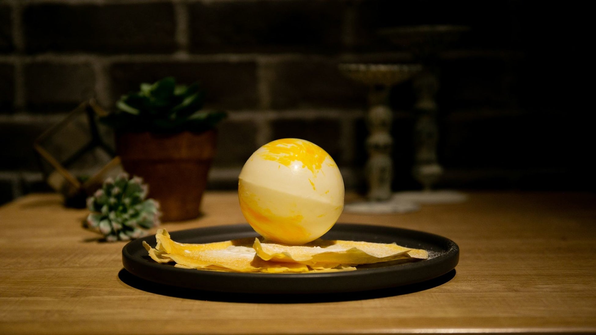 火星に見立てたホワイトチョコドームを、オレンジソースで溶かして食べるクレープシュゼット。チョコドームが溶けていく様はSNS映え必至。冷たいバニラアイス、爽やかなオレンジ、ふんわりしたクレープのメリハリが絶妙です。※なくなり次第終了