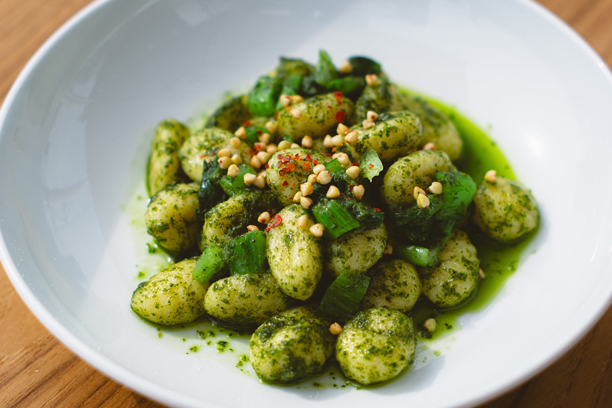 ●野沢菜ジェノベーゼ 蕎麦の実のニョッキ