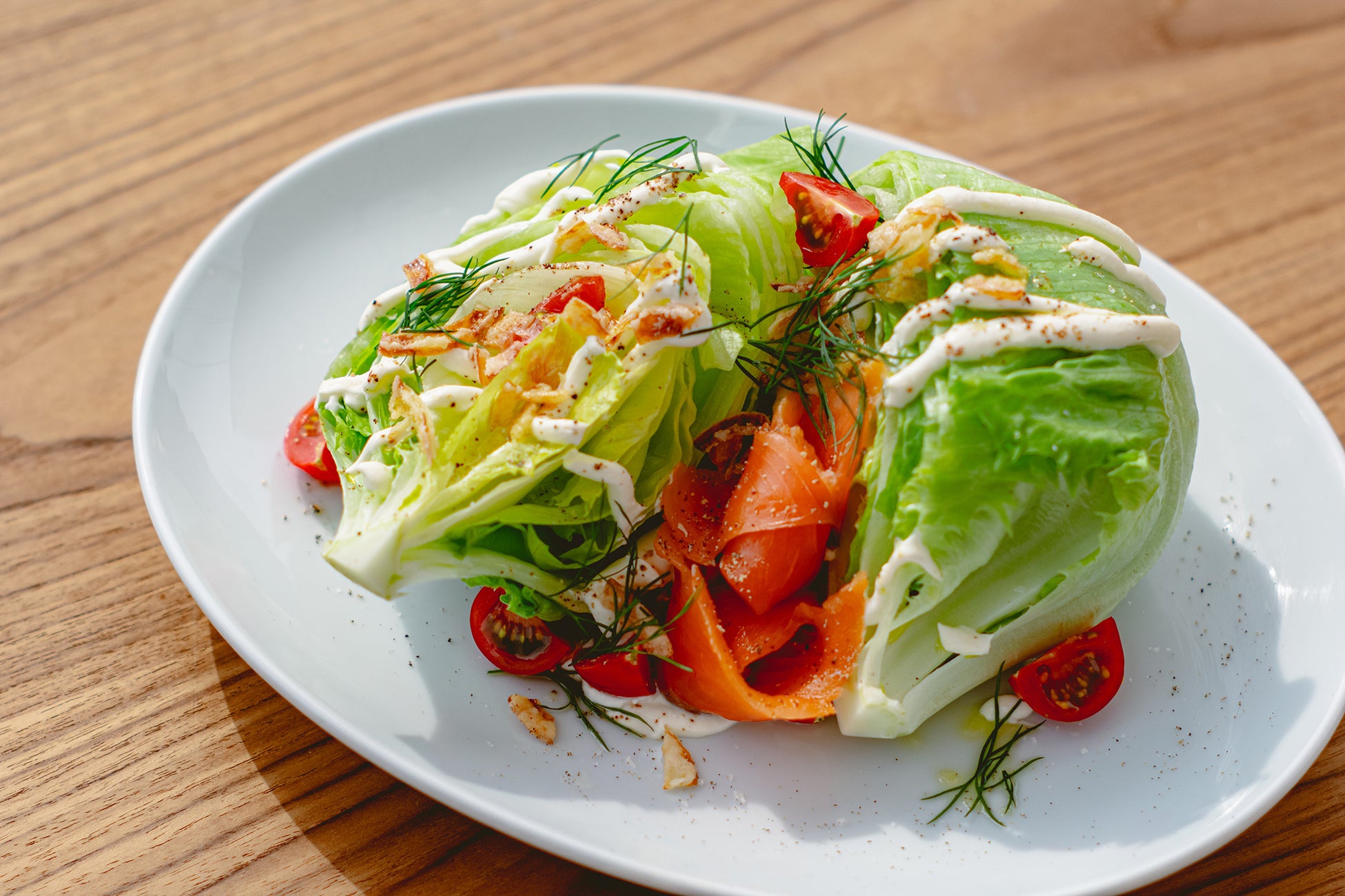 ●アイスバーグウエッジサラダ スモークサーモン フライドオニオン ランチドレシング