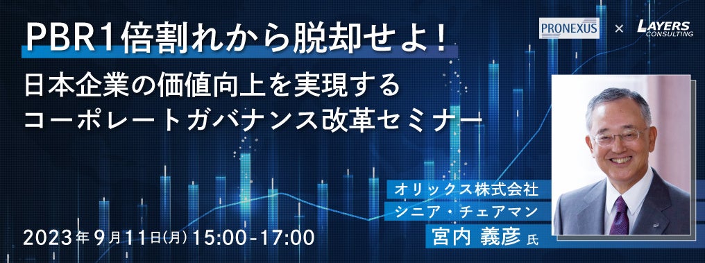 プロネクサス、レイヤーズ・コンサルティング共催 無料オンラインセミナー 『PBR1倍割れから脱却せよ!日本企業の価値向上を実現するコーポレートガバナンス改革セミナー』 9月11日(月)開催