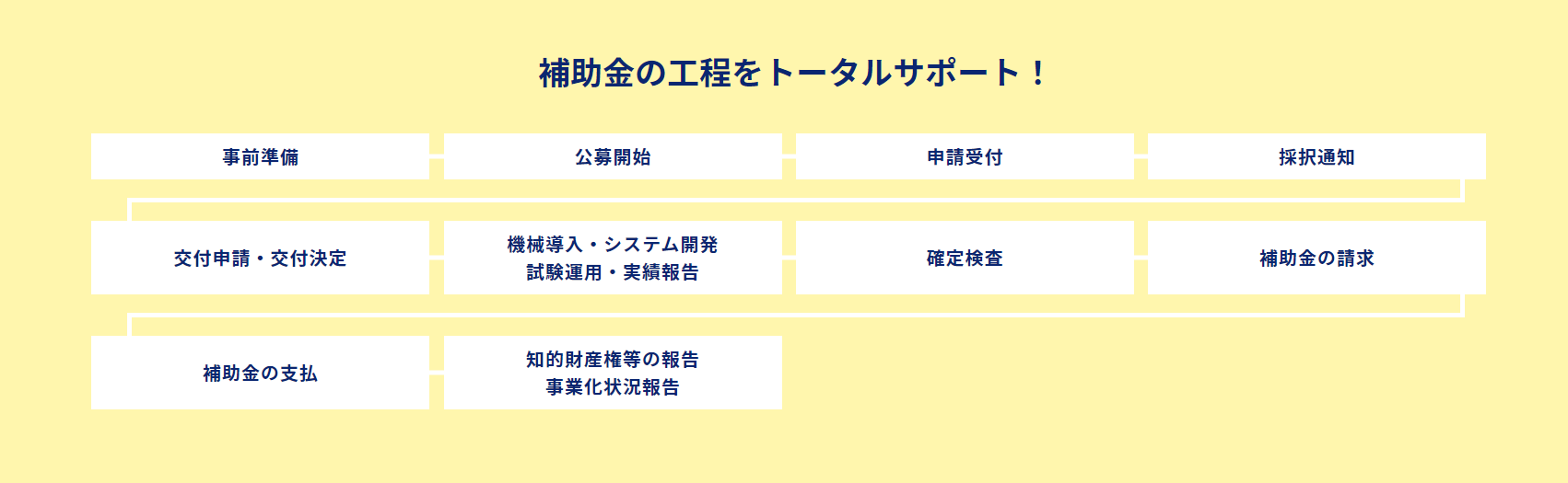 そこで、「補助金オフィス」ではそうした煩雑な工程をひとまとめに引き受け、申請後までの各工程を網羅的に支援しています。14次公募に間に合わせたいという方・次回公募をご検討されている方・まずは相談してみたいという方はお気軽にお問い合わせください。