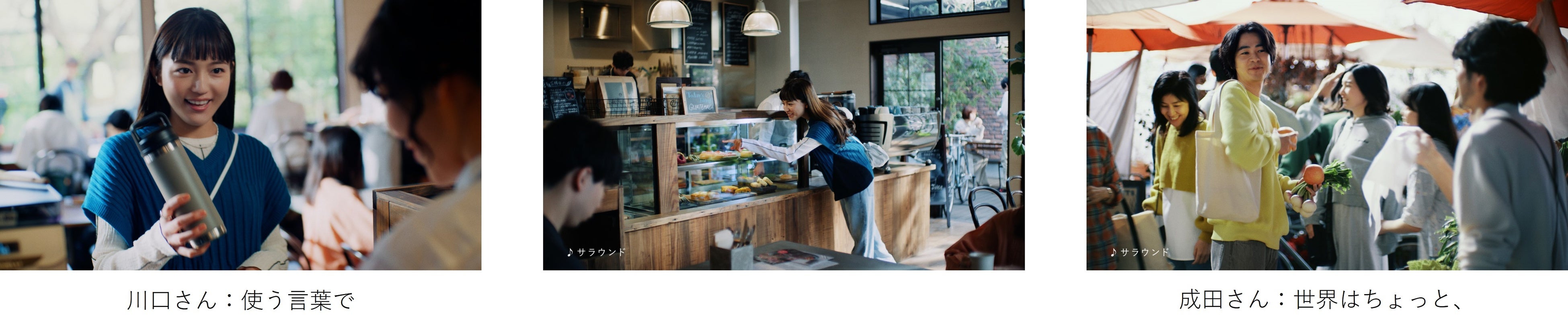 「 CMの中でもマイタンブラーを持参したり、詰め替えをしたりというシーンがあると思うのですが、私もそういう選択肢があるならそっちを選択したいなと常日頃思っています。マイタンブラーもお仕事柄毎日(飲み物を)飲むので、当たり前のように現場に持って行っています。そんなに大きな難しい事ではなくて、何か選択肢があったときに環境にいい方を選ぶことは増えてきたのかなと思います。」