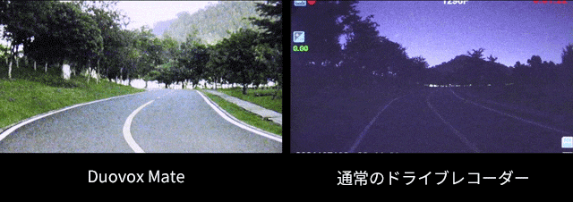 Duovox MateにGセンサーが搭載されていることにより、ある一定の大きさ以上の衝撃を受けると、その数十秒前から、数十秒後までの録画映像を、上書きされない場所に自動で保存してくれます。
