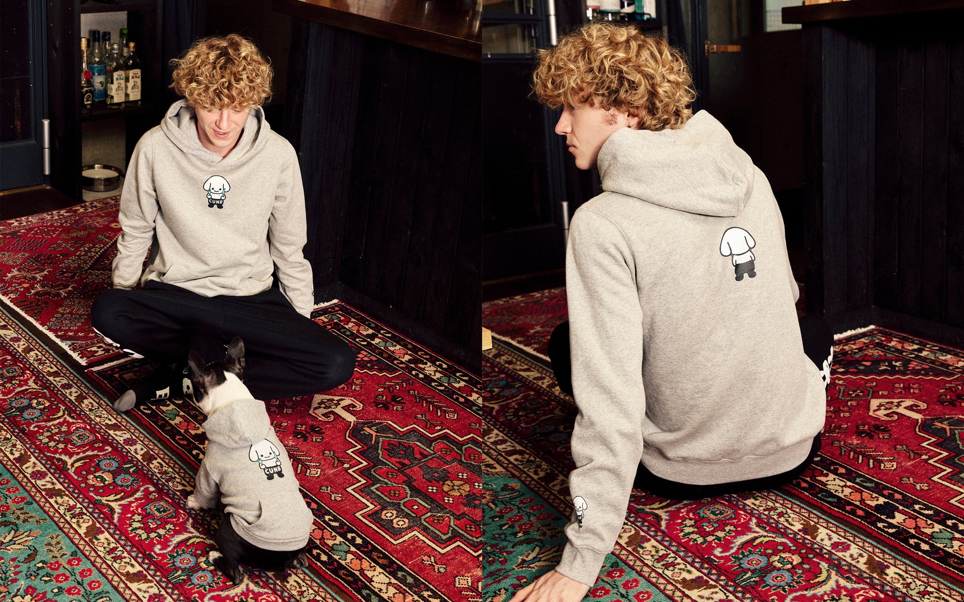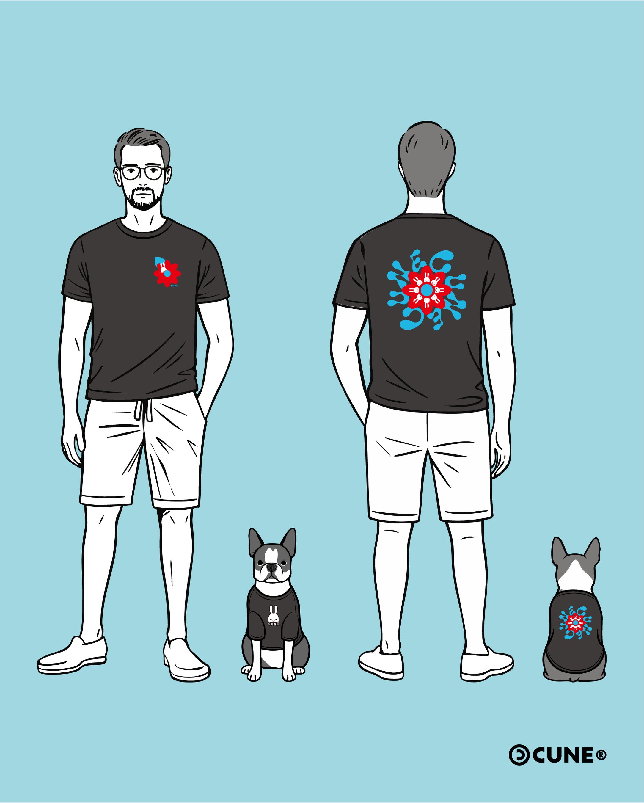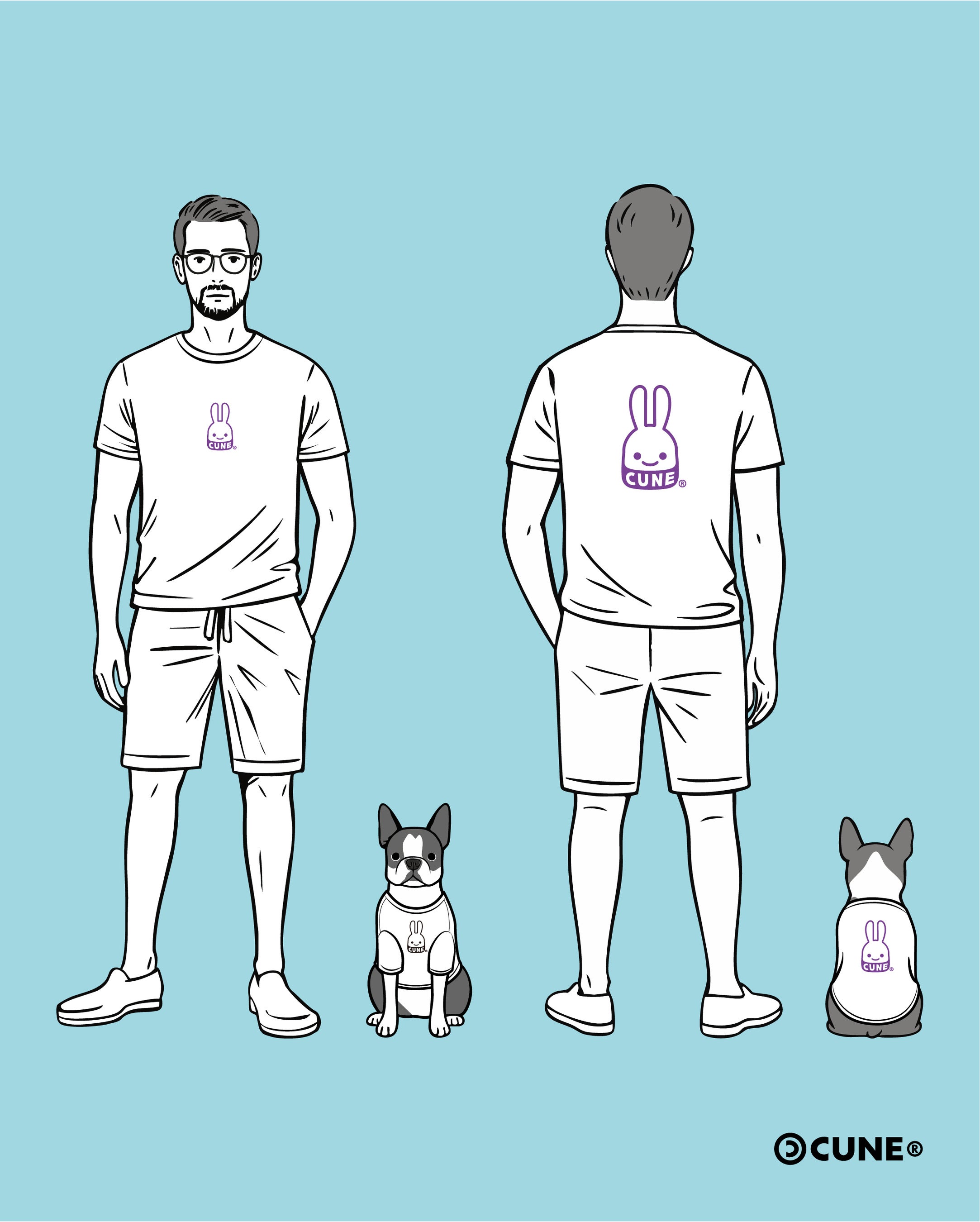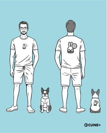 「犬と人でおそろい」をコンセプトに、CUNEの定番であるTシャツ/パーカーなどを犬サイズにアレンジし、縫製仕様などもほぼ同じく再現しています。