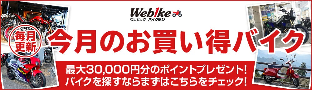 Webikeバイク選びで掲載されているバイクのお見積り・ご成約で、最大30,000円分のポイントをプレゼントしています。