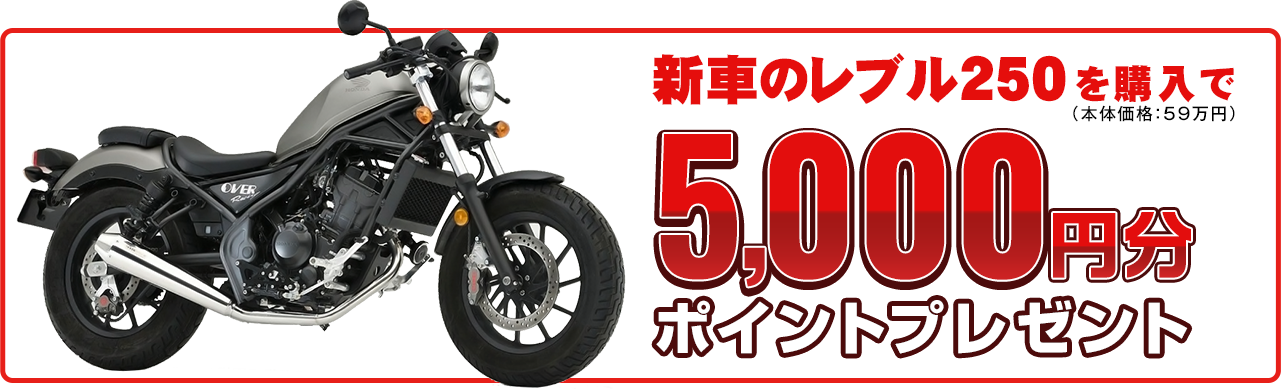 新車のレブル250(車両本体価格:59万円)を購入すれば