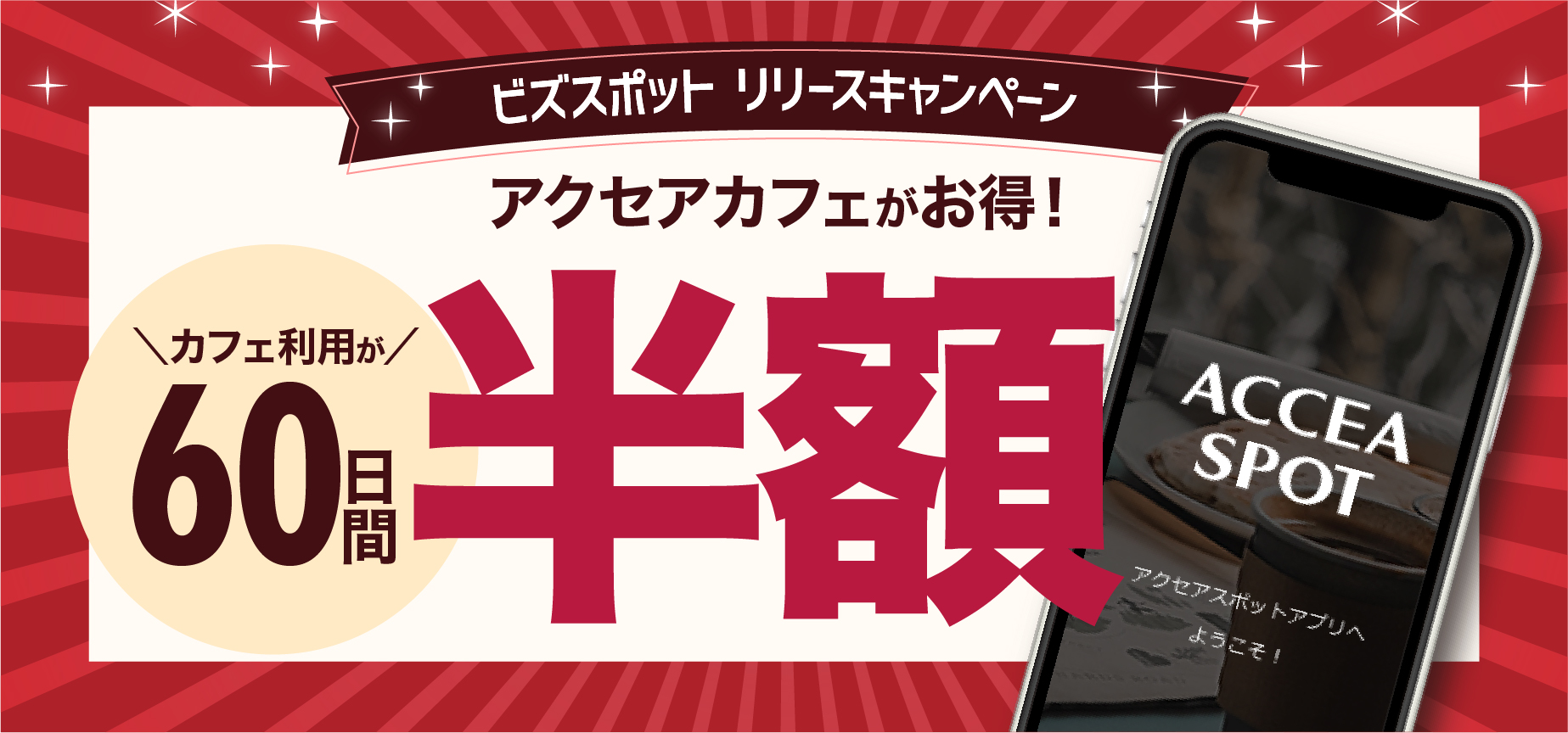 1、アクセアカフェの利用料金が60日間半額!