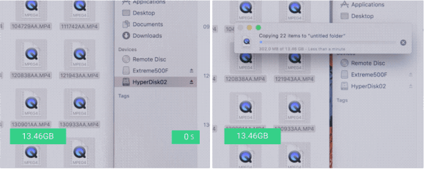 HyperDiskの読み込み速度は最大約1000MB/s、書き込み速度は最大約900MB/sで高速データ転送を実現しています。