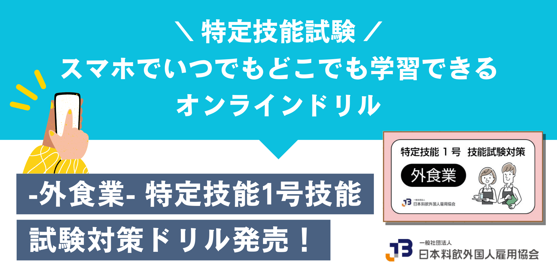 【特定技能】\スマホでいつでもどこでも学習可能!/ 「特定技能 1号技能試験対策(外食業)」デジタル教材発売