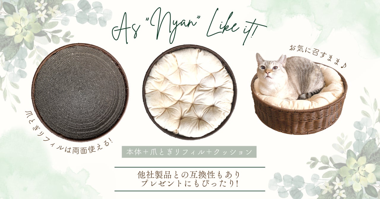 バリバリもスヤスヤも『お気に召すままー As nyan like it! 』という思いを込めた商品名の通り、たくさんの猫ちゃんたちのお気に召していただけることを願っています。