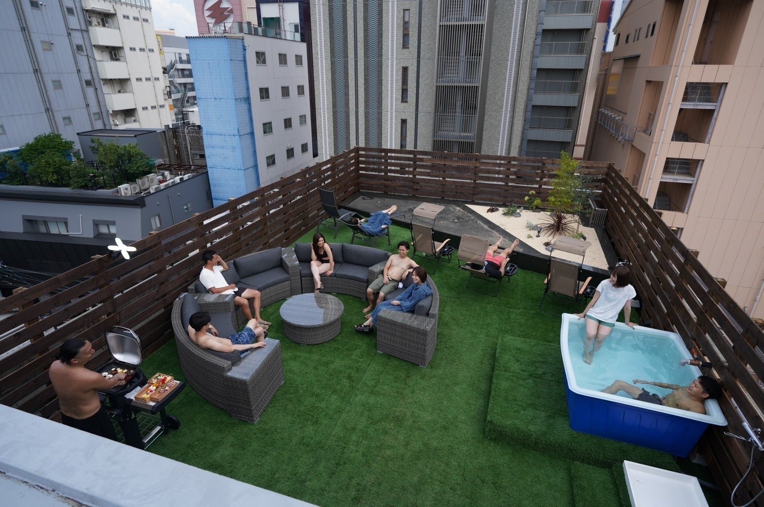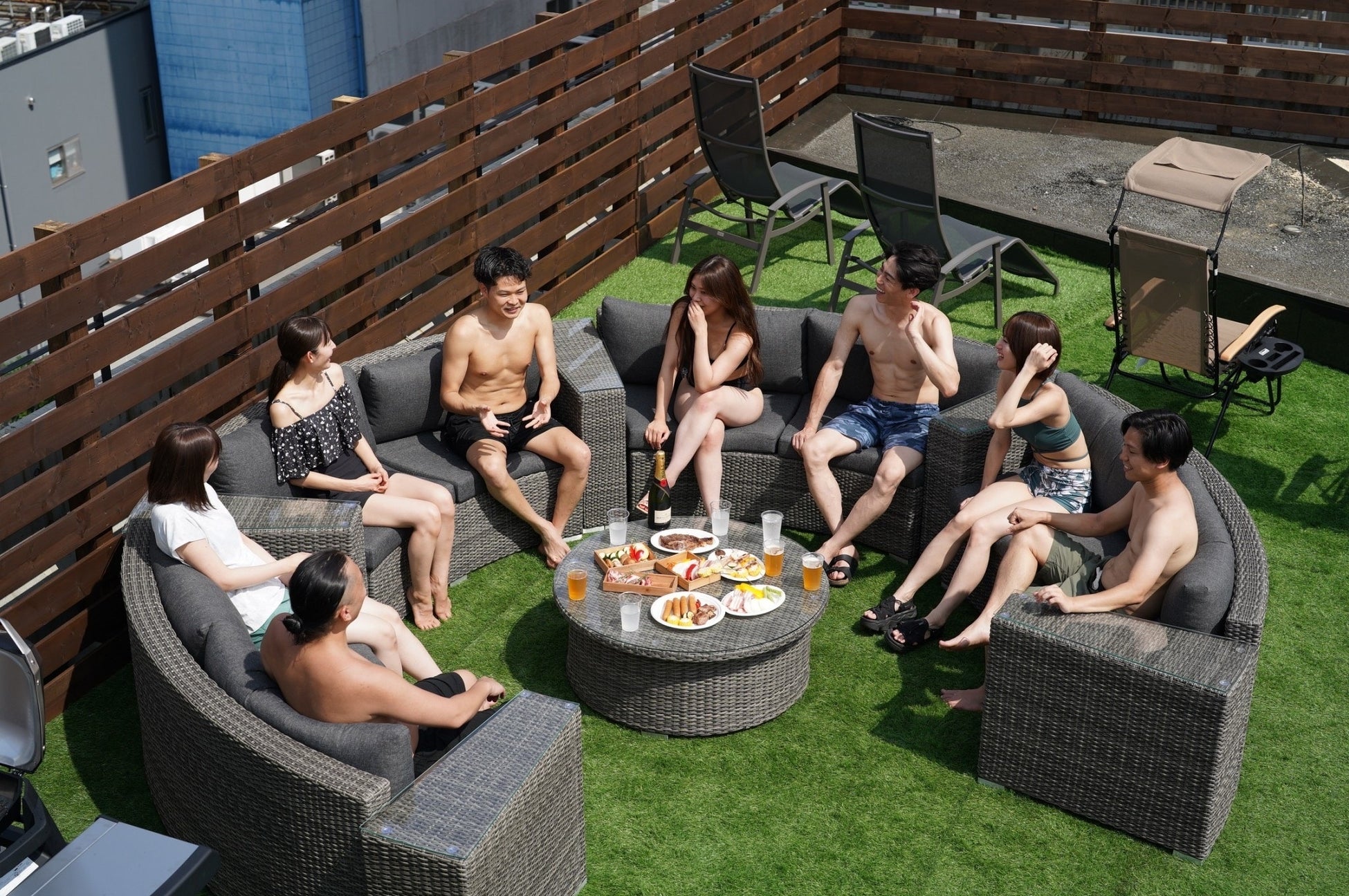 ROOFTOP SAUNAは水着等着用の上、男女一緒に利用が可能で、サウナと一緒にBBQなどを楽しむことができます。