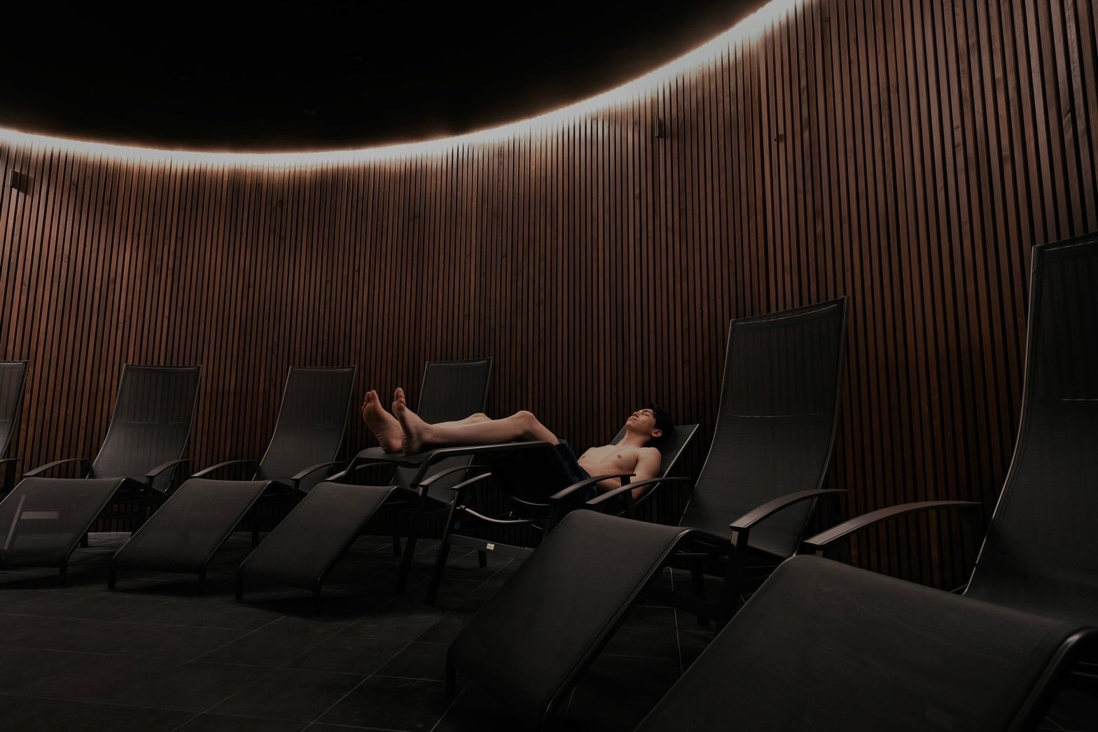 整い椅子は自分専用。for saunerでは、サウナにおける最も大きなストレスは「混雑」と考え、同時施設利用最大人数を9名に制限。ヨーロッパから取り寄せた高級な整い椅子を自分専用として使えることで、ストレスフリーでラグジュアリーな整い体験を実現しました。