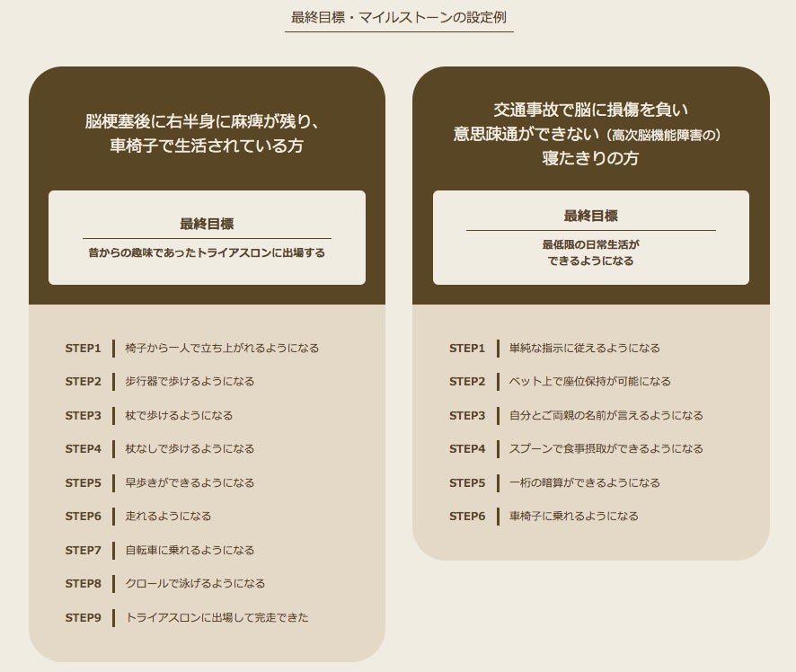 最初に面談を行ってリハビリの目的やお身体の状態を確認し、最終目標と途中ステップ、達成時の料金を患者様と一緒に設定。各ステップを達成してから一週間その状態が維持されたときに料金が発生し、お支払いいただけない場合は次のステップに進むことができない仕組みになっています。