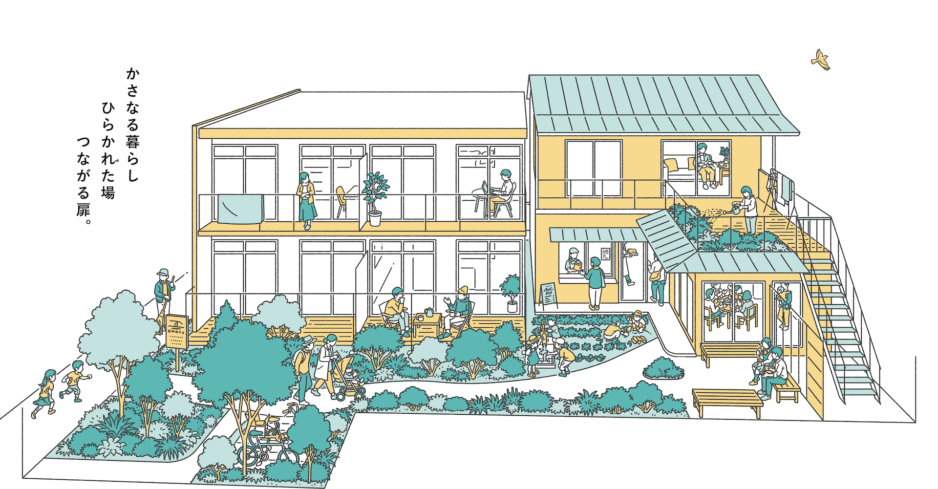 単なるシェアハウスにとどまらず、多様な人が暮らしや仕事のかさなりあいを楽しみながら使う・使いながらつくる「まちの共有地(コモンズ)」を目指します。