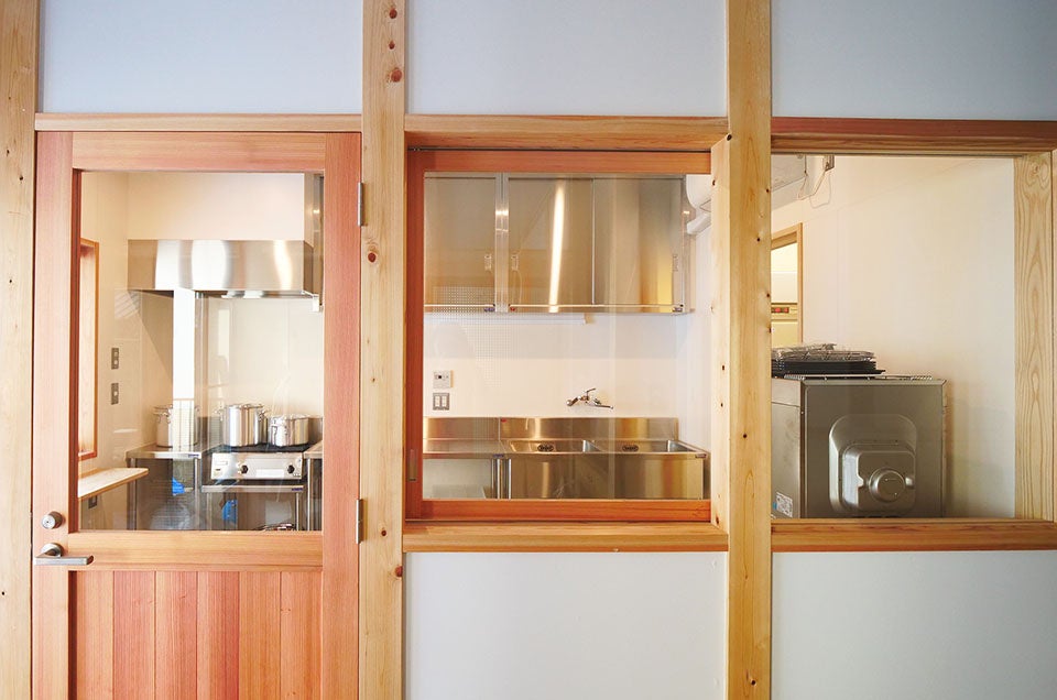 東棟は水周りを共同利用するシェアタイプの住居である一方、西棟にキッチン・バス・トイレのついた個室があることは、世帯構成や年齢に多様さをもたらし、シェアする暮らしをより豊かにします。さらに、東棟のコモンスペース(キッチン・ダイニング)は、OMOYAの賃貸入居者だけでなく、メンバー登録した人が関わりながら使うことができます。メンバーは一人ひとりが会費を負担し、OMOYAを共に育てていきます。さらに、入居者やメンバーが日常使いするキッチンに加えて「ファクトリーキッチン」を整備。菓子製造業の許可取得が可能で、食にまつわる小商いへのチャレンジも後押しします。