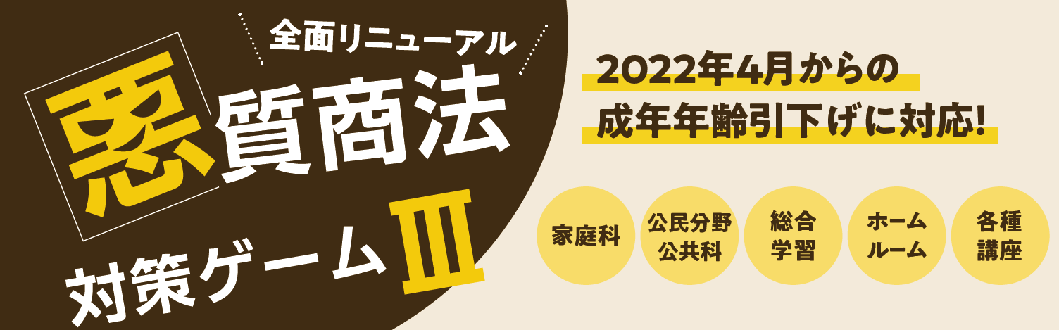 ベストセラー教材「悪質商法対策ゲーム」を成年年齢引下げに完全対応した「悪質商法対策ゲームⅢ」として全面リニューアルしました