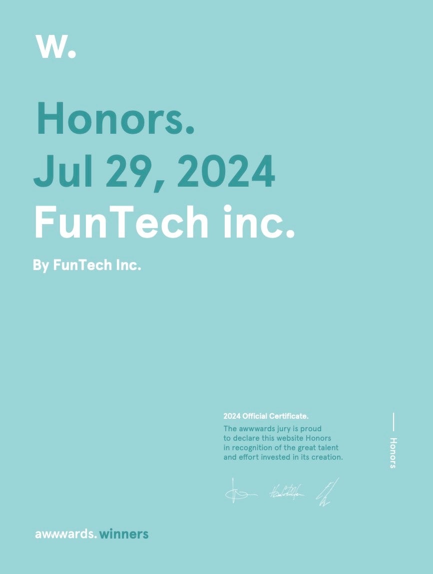 Webデザインと映像制作を手掛けるFunTech株式会社(本社:東京都渋谷区、代表取締役 太田 義孝)は、このたび自社のコーポレートサイトにて、Webデザインの世界3大アワードといわれる「CSS Design Awards」「Awwwards」「FWA」を含む4つのアワードにて賞を受賞しました。