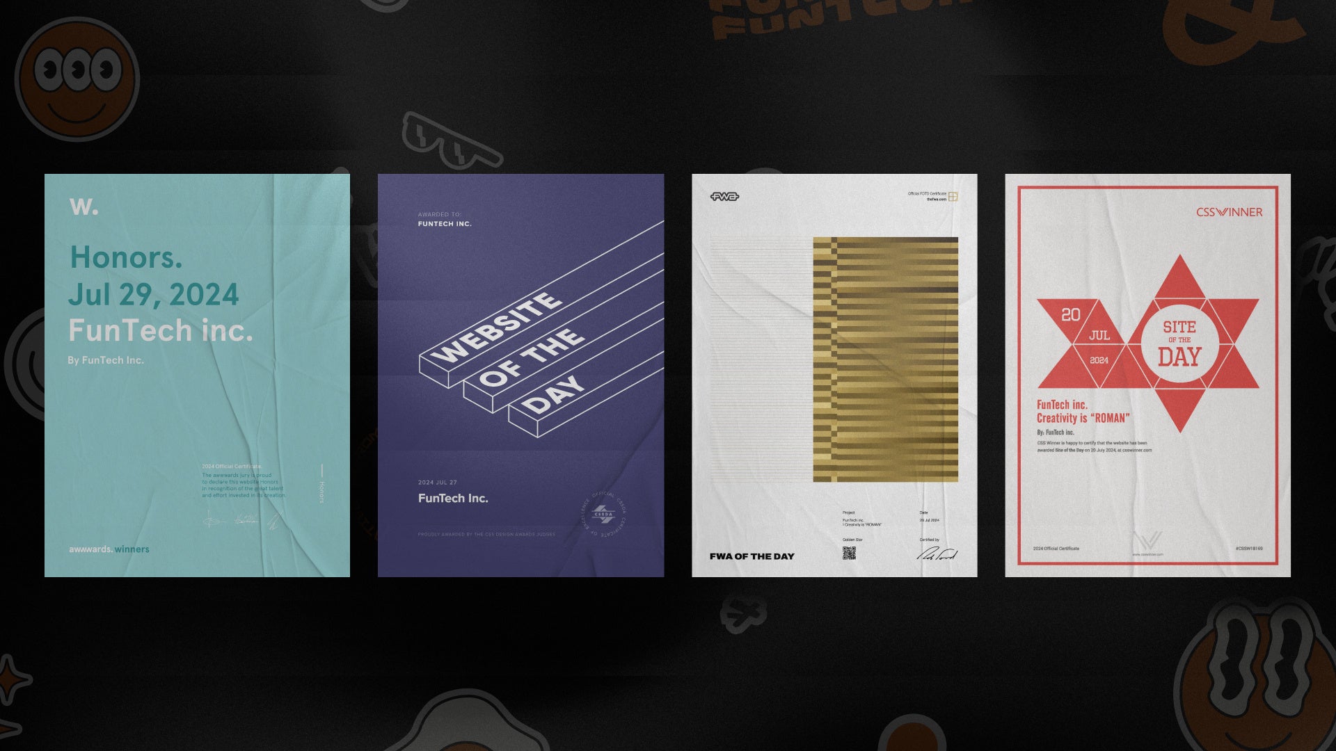 FunTech株式会社が自社コーポレートサイトにて、Webデザインの世界3大アワードといわれる「CSS Design Awards」「Awwwards」「FWA」を含む4つのアワードにて複数の賞を受賞