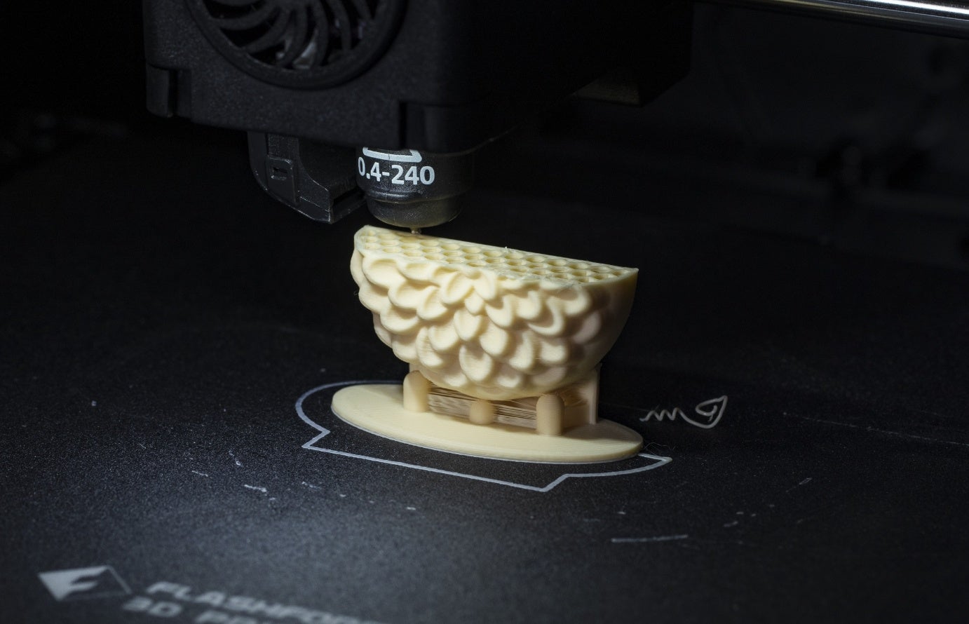 以前は鋳物による型の作製を型屋さんにお願いしていましたが、現在ではマシニングセンタ(切削工作機械)によるアルミ合金の削り出しを自社にて行っております。これまで1000種類以上の最中型を制作した実績とデジタル技術の導入により精巧なデザイン表現や特殊形状の作製が可能になりました。ワッフル型の構想から2年、こだわり抜いたデザインは本物のワッフルと見間違える程のリアルな仕上がりになりました。