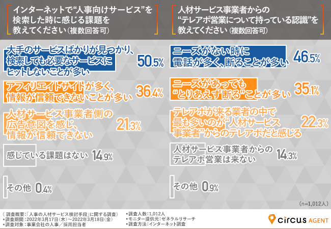 - “人事向けサービス”を検索した時に感じる課題とテレアポ営業について