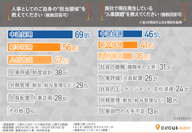 その一方で、実際に採用業務を担当する人事/採用担当者は、その中途採用において“人事課題”を強く感じていることも分かったと思います。
