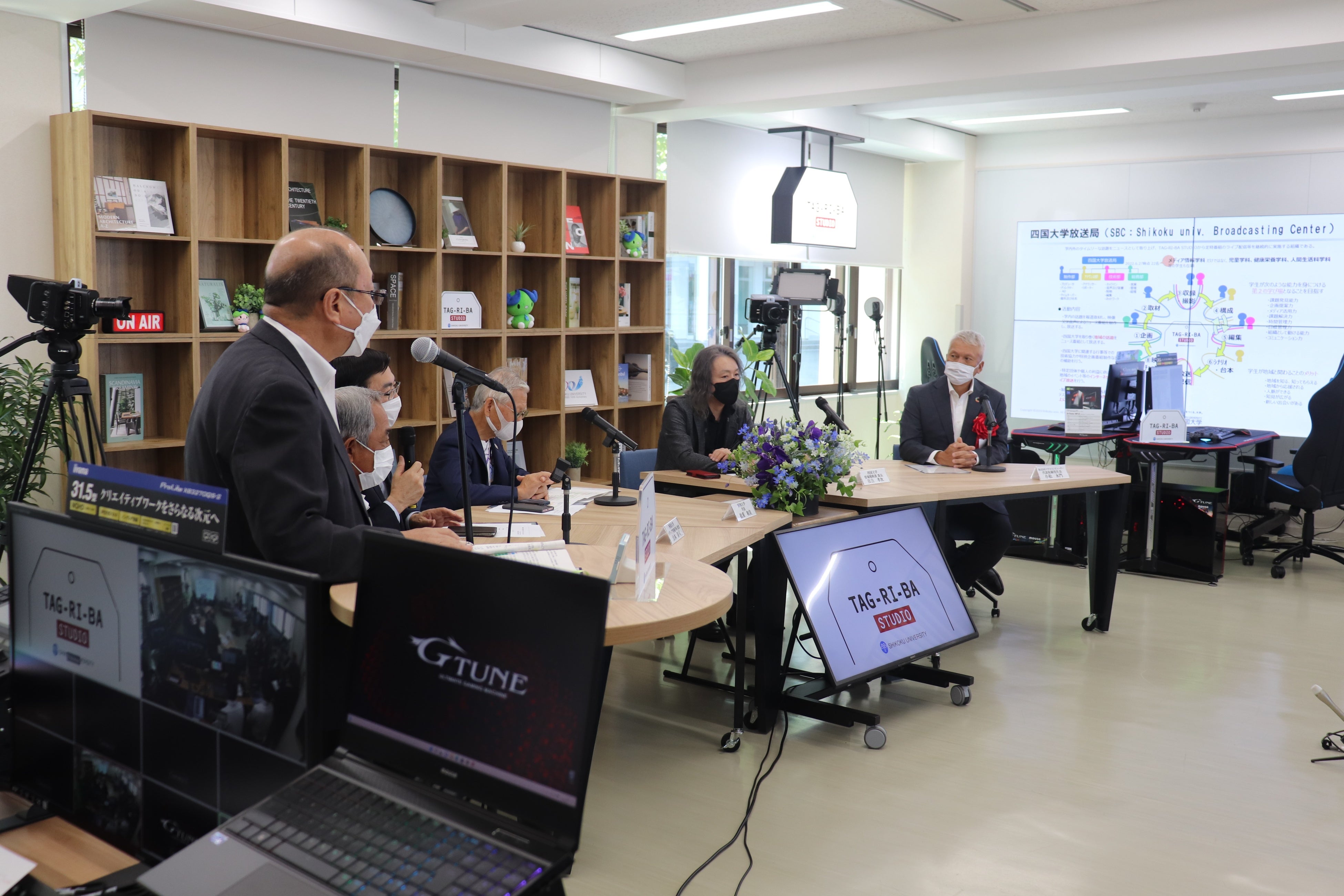 特に「地域連携における共創の場」として、本学の学生及び教職員が「地域とつながる場」として、このTAG-RI-BAスタジオを利用し、ライブ配信や動画制作等を通して地域と関わり、地域の課題を解決していくことを期待しています。
