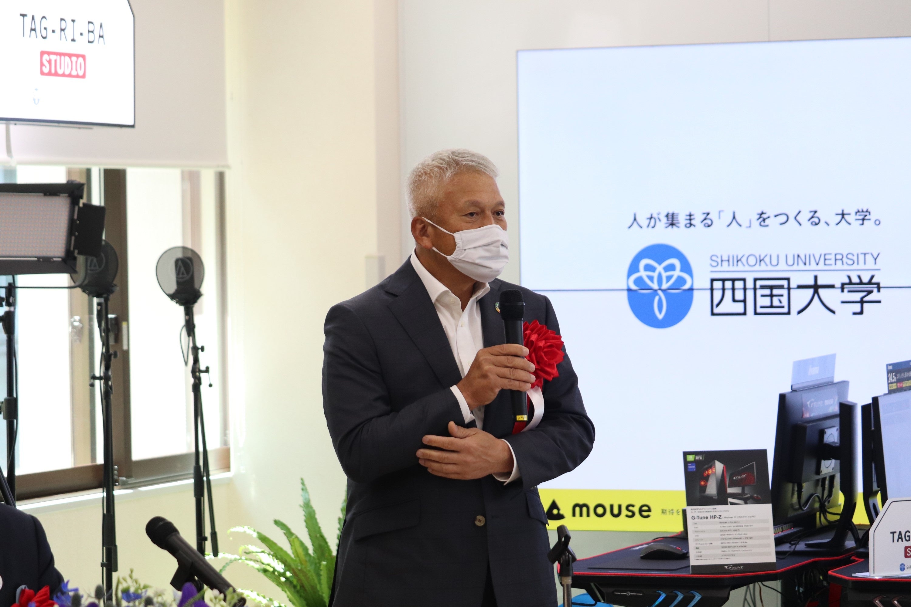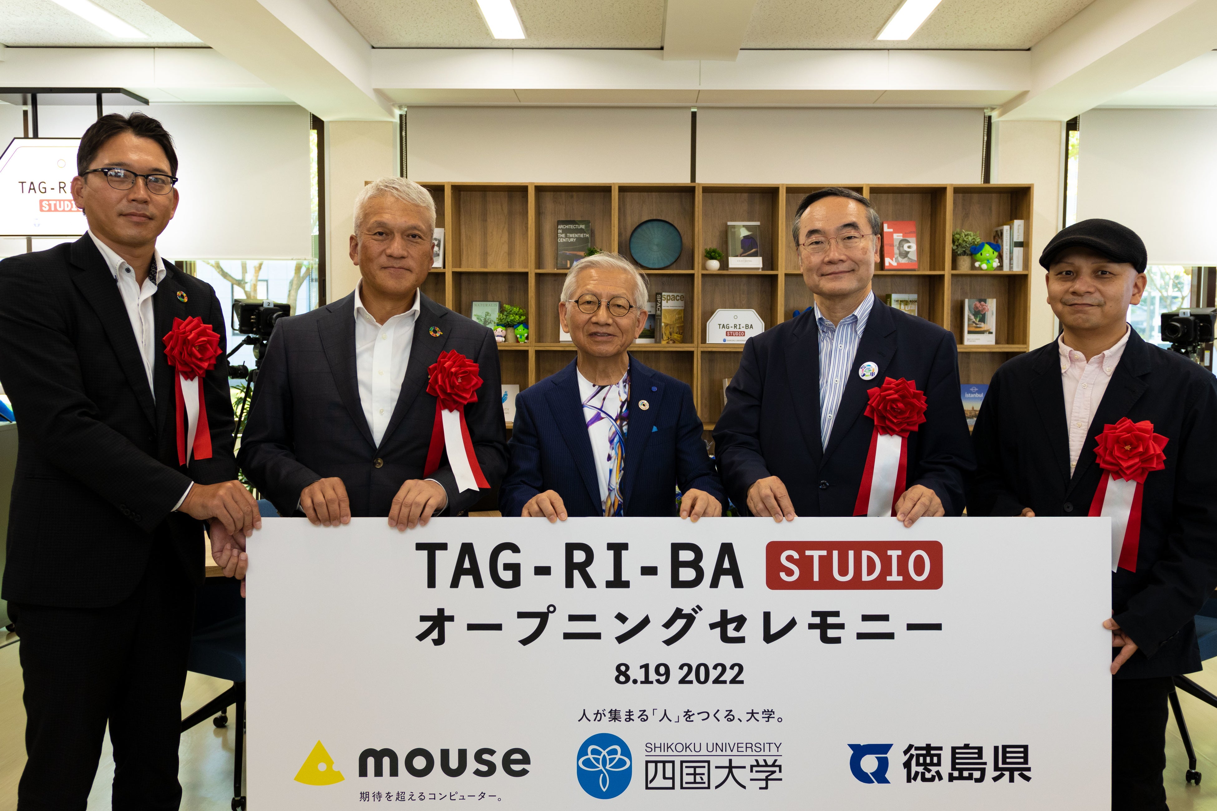 四国大学「TAG-RI-BA STUDIO」オープン。地域連携における共創の場として、四国大学キャンパス内に開設。オープニングセレモニーに徳島県知事、株式会社マウスコンピューター代表取締役社長が出席。