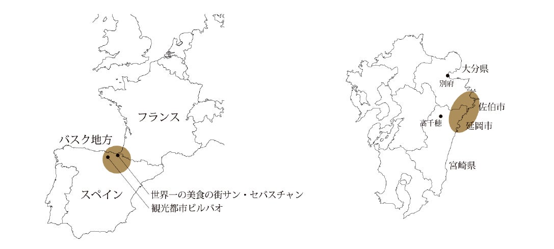 世界一の美食の街と言われるサン・セバスチャンを擁し、フランス・スペインにまたがるバスク地方をモチーフに、九州で1位、2位の面積を誇り、海・山・川の豊かな恵みを享受する延岡市と佐伯市が、「食」と「連携」をキーワードとして新たな経済・文化圏の形成を目指して、令和3年度まで取り組んできました。これまでの取り組みにより磨かれた延岡市の「食」の魅力を引き続き県内外に発信するとともに、市内の料理人や生産者の連携を深め「美食の街のべおか」を目指し取り組みます。