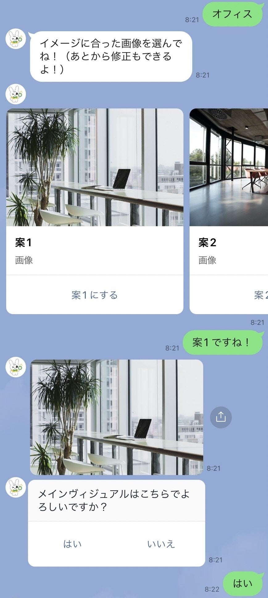 本サービスはすべての操作がLINE上で完結します。移動中やソファの上であっても作成・更新でき、貴重なワーキングタイムを削る事なく使えます。