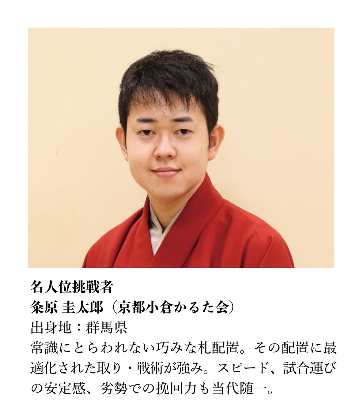 相手陣への鋭い攻めが魅力の川瀬名人にとっては初の防衛戦。一方、独自の戦術を持つ粂原挑戦者にとっては名人位奪還がかかった対戦です。前回の名人位戦では、4回戦のうち2度、互いの陣地の札が1枚ずつになる「運命戦」となったことからも、今大会でも激戦が予想されます。