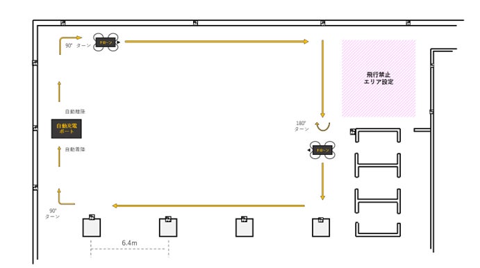 - 飛行禁止エリアや狭小空間での飛行制御を含めた3種類のフライトプランに対する自律飛行の実験を行い飛行に問題がないことを確認