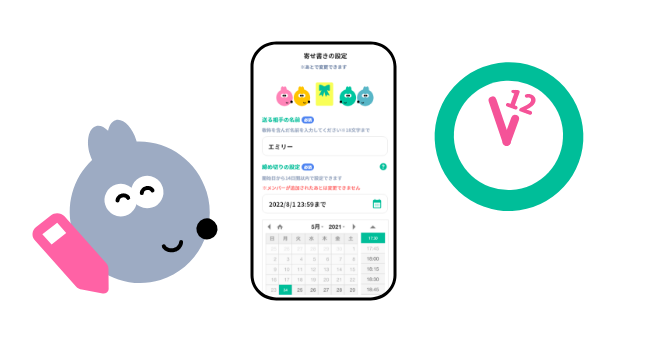 ・グリーティングカードとして利用できる、1人で気軽に作って送れるグリカ機能の追加を予定しております。