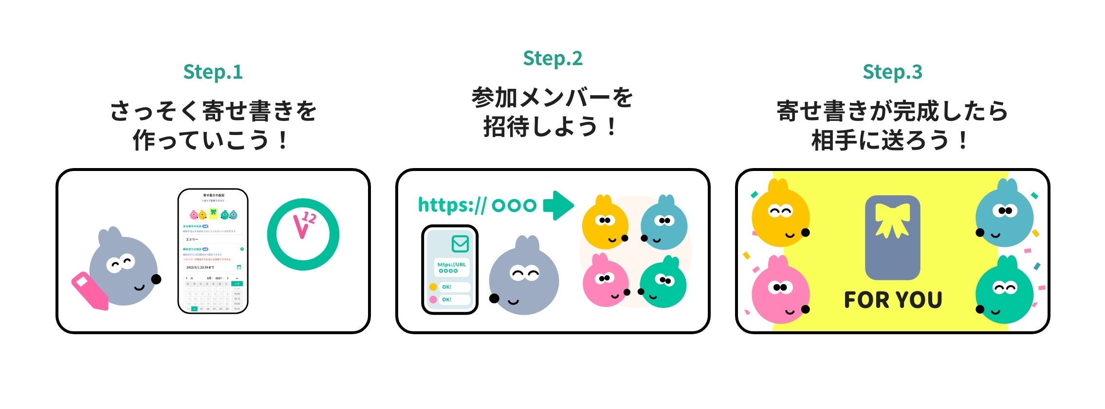 - 幹事さんのお悩み解消機能が満載!幹事さんに寄り添うことで寄せ書きはもっと楽しいものに