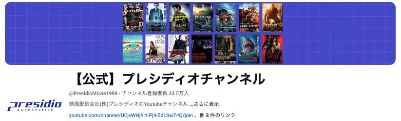 映画配給会社プレシディオが運営する「【公式】プレシディオチャンネル」は、長編映画を無料で全編視聴できるYouTubeチャンネルとして、昨年の3月よりサービスをYouTubeでスタートし、現在33万人の登録者を超えるチャンネルへと急成長を続けています。洋画を中心とした幅広いジャンルの映画を取り揃え、アクション、サスペンス、コメディ、ホラーまで、さらに字幕・吹替もあり、誰でも楽しめる豊富なラインアップを提供しています。