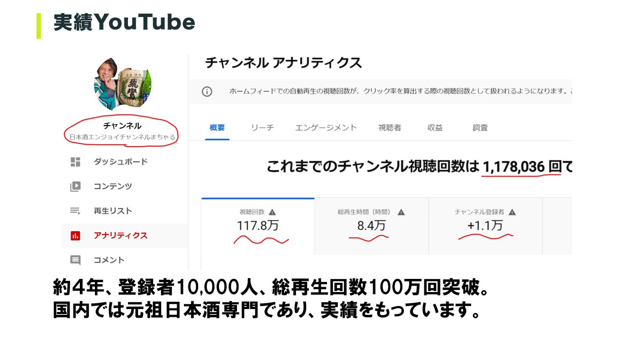 2017年に当時、顔出しで継続的にYouTuber調で日本酒の魅力を発信しているものとしては初の日本酒専門YouTubeを公開し始める