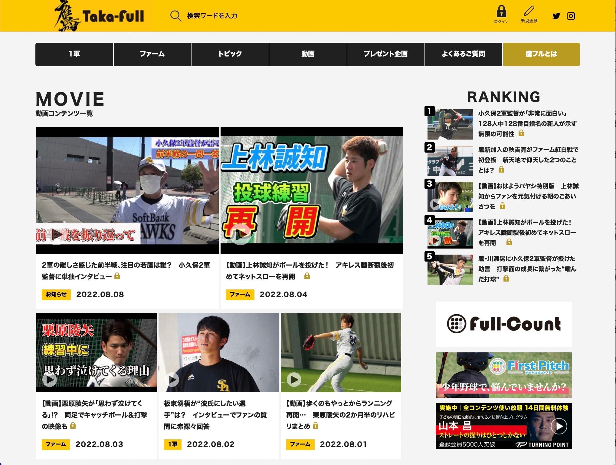 株式会社Creative2(本社:東京都目黒区)は2022年7月28日、福岡ソフトバンクホークス専門メディア「鷹フル」を発表、同8月10日よりコンテンツをフルリリースいたしました。