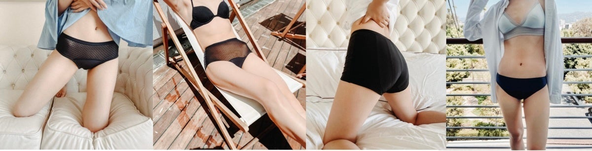 ショーツのデザインは4タイプ。いつものランジェリーを身につける感覚で毎日ご使用することができます。公式オンラインストアではまとめ買い割引に対応しています。( https://period-tokyo.com/ )