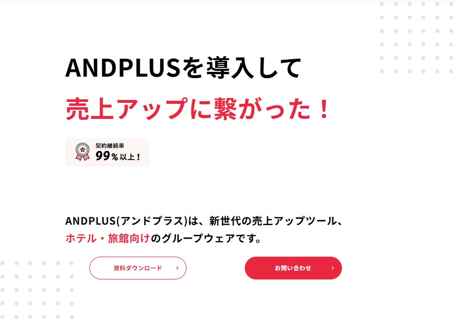 「ANDPLUS」は、ホテルや旅館など宿泊施設のレベニューマネジメントを支援するクラウドサービスです。