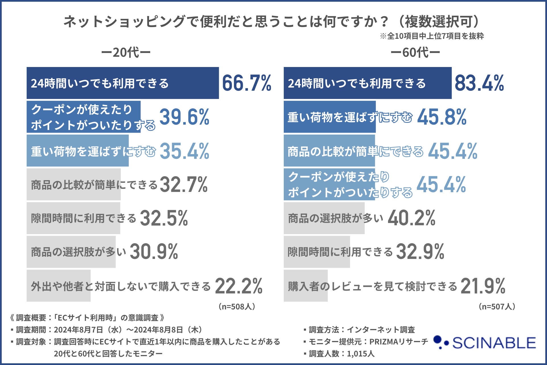 両世代にとっても時間に縛られずに買い物ができることが、大きな魅力であることが示されました。