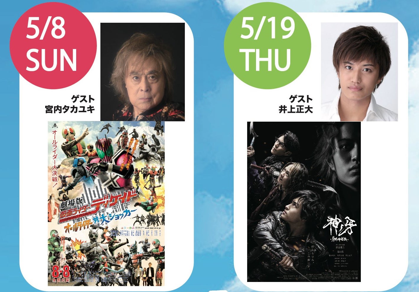 <劇場都市としまエンタメシアターin 新文芸坐>#09 イベント企画〜5/1の仮面ライダー龍騎 20周年イベント〈ゲスト:須賀貴匡〉の 次は5/8 「劇場版 仮面ライダーディケイド オールライダー対大ショッカー」〈ゲスト:宮内タカユキ〉そして・・・5/19の夜あかされる!?ヒーロー役でもダークヒーロー役でも人気の井上正大トークショー!