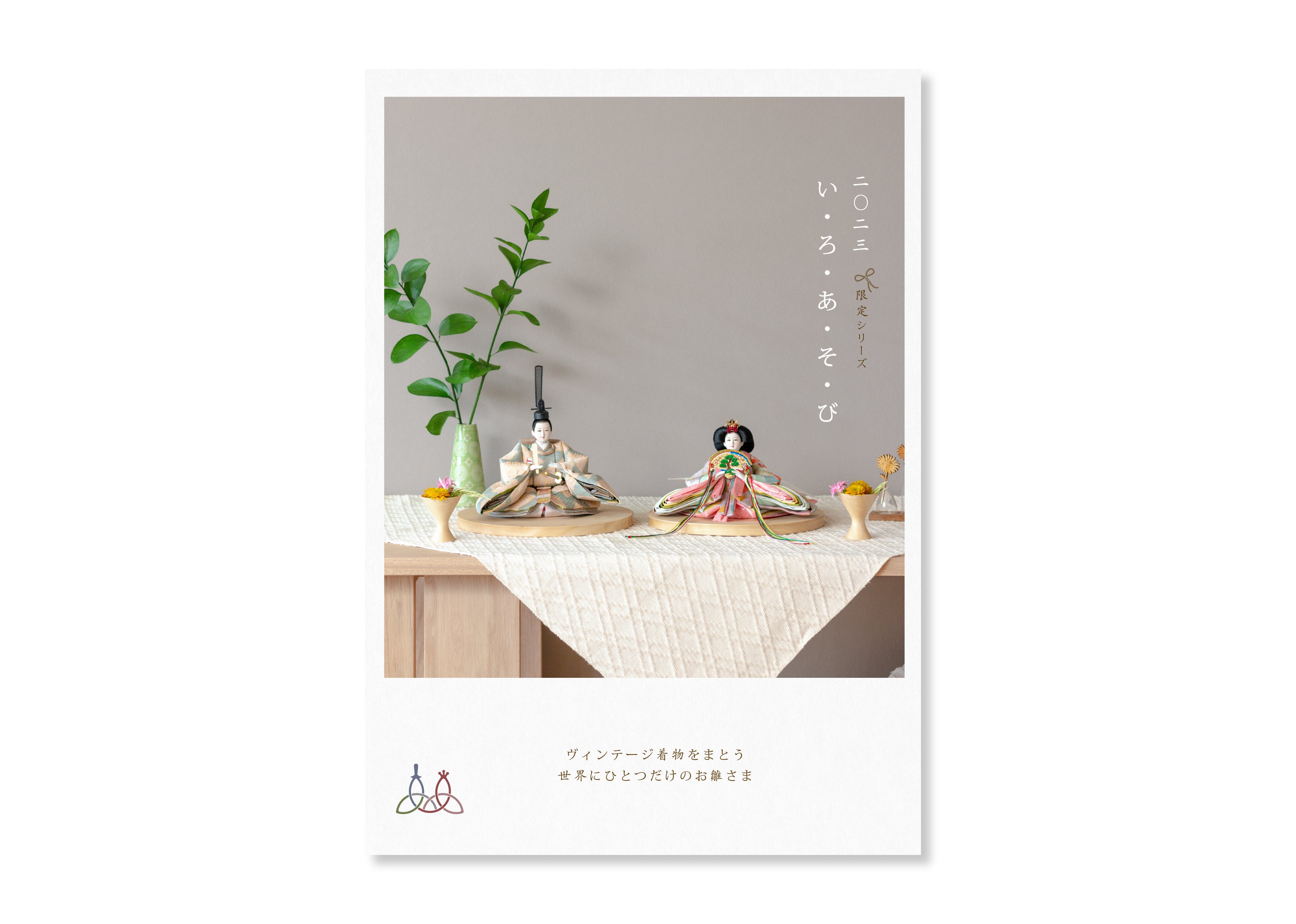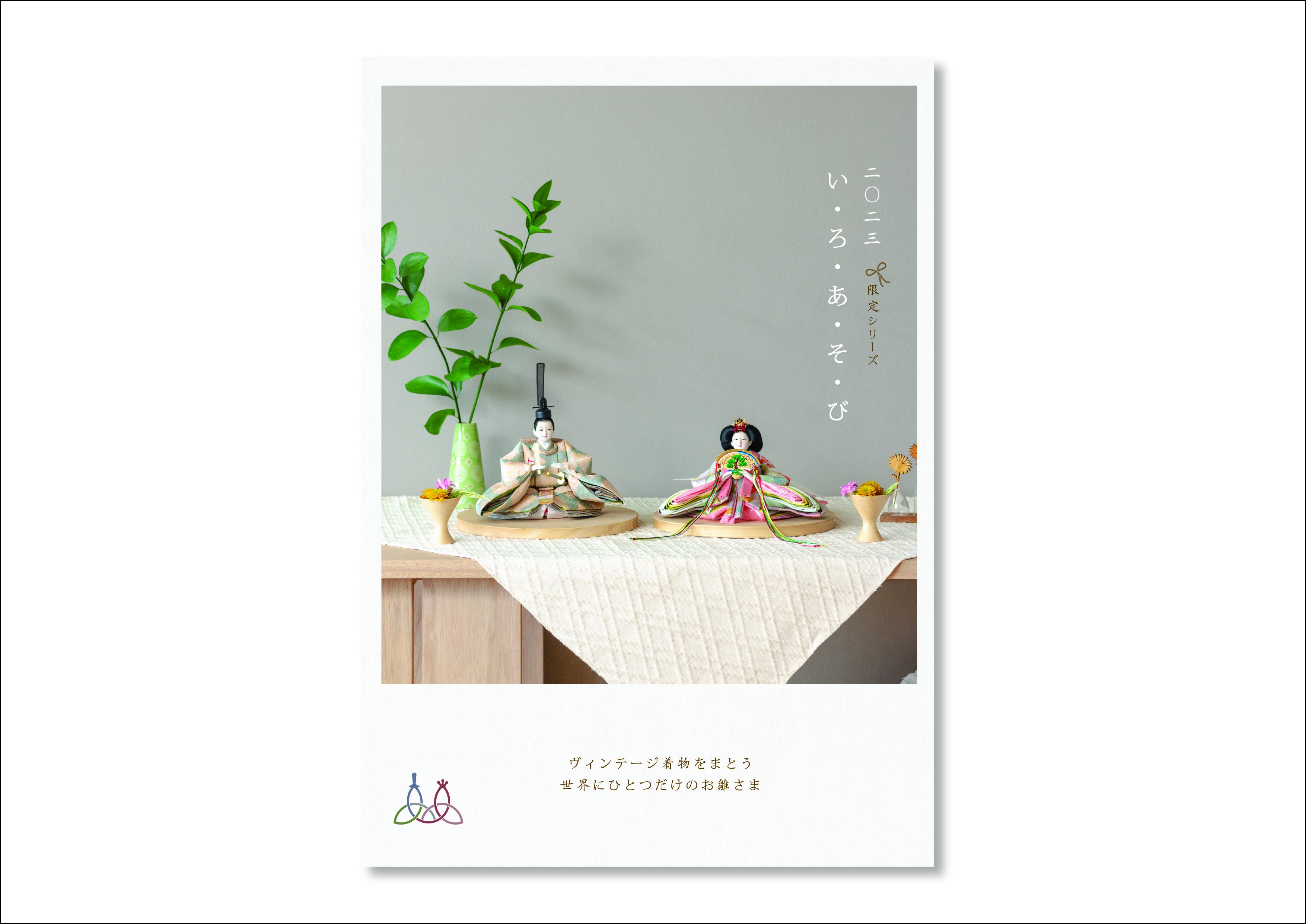 つるとひな2023より、お雛さまカタログをお求めの皆さまにお配りしております。ヴィンテージ着物を使用したシリーズ「いろあそび」や、つるとセレクトのお雛さま、お飾り等のラインナップをご覧いただけます。