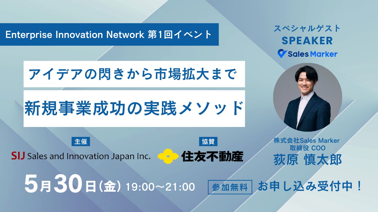 株式会社Sales and Innovation Japan(本社:東京都品川区、代表取締役:冨田憲一、以下「SIJ」)は、住友不動産株式会社グロースサポート事業部(本社:東京都新宿区、代表取締役:仁島浩順、以下「住友不動産」)の協賛のもと、大企業の事業責任者や新規事業担当者に特化した交流コミュニティ「Enterprise Innovation Network(以下「EIN」)」を設立し、第1回イベントを2025年5月30日(金)に開催することをお知らせいたします。