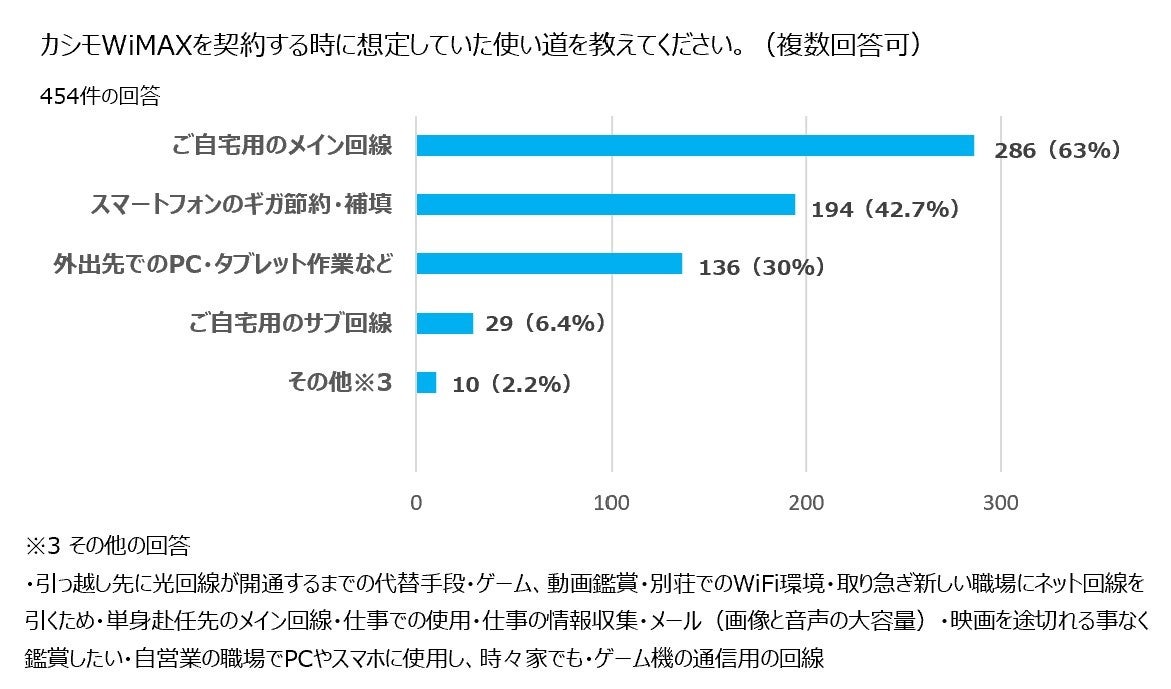 調査対象者:2022年8月11日〜8月29日にカシモWiMAXと契約開始し、回線が開通した全国の利用者1390人