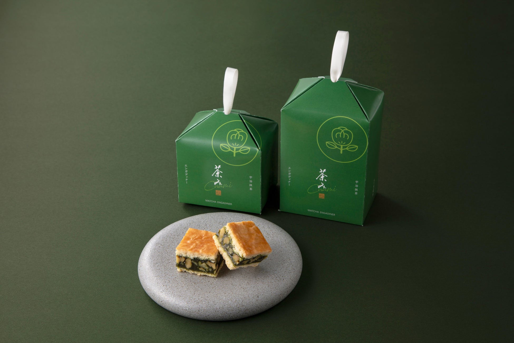 香り高く色合いもあざやかな、京都府産の熟成宇治抹茶を練り込んだほろ苦いキャラメルに、きざんだくるみをぎっしりと合わせました。スイス・エンガディン地方の伝統菓子「エンガディナー」を思わせる、バターを使用しさっくりほろりとした食感に仕上げたタルト生地でつつみ込んだ、風味香ばしく香り豊かな焼き菓子です。