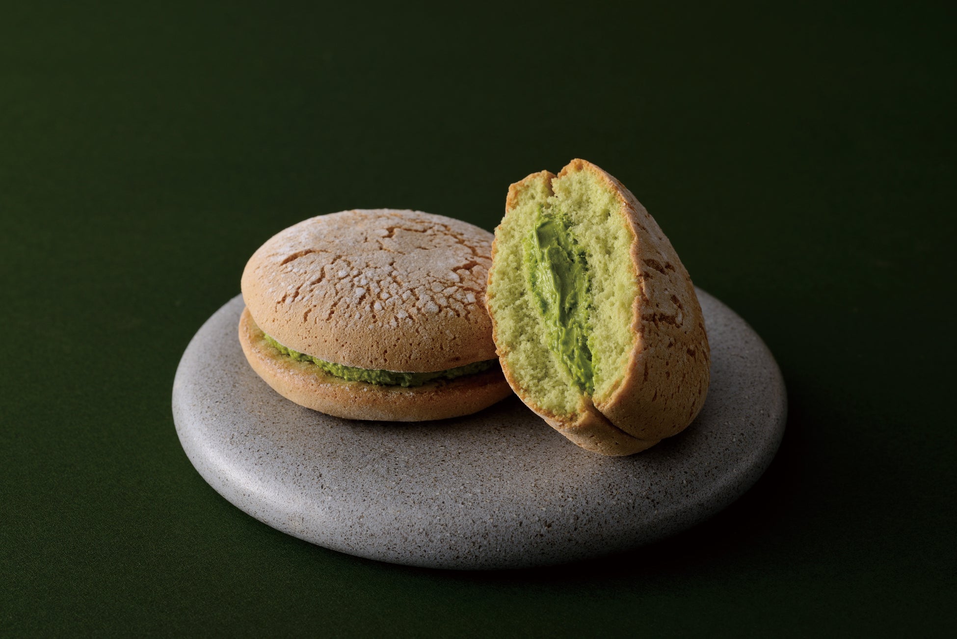宇治抹茶の色合いと風味を損なうことなく練り込んだ抹茶クリームをチーズ風味のふんわりやわらかな生地で挟みました。