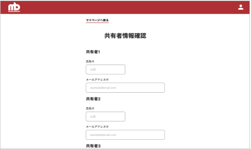マイページで共有者を設定しておけば伝えたい相手を選択するだけで設定が完了できます。