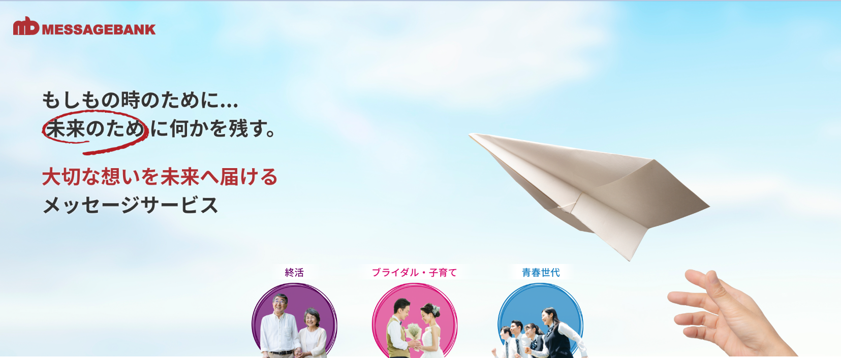エンディングノートや画像・動画メッセージをインターネット上に保存して時空を超えた未来に伝えるサービス「メッセージバンク」を提供開始